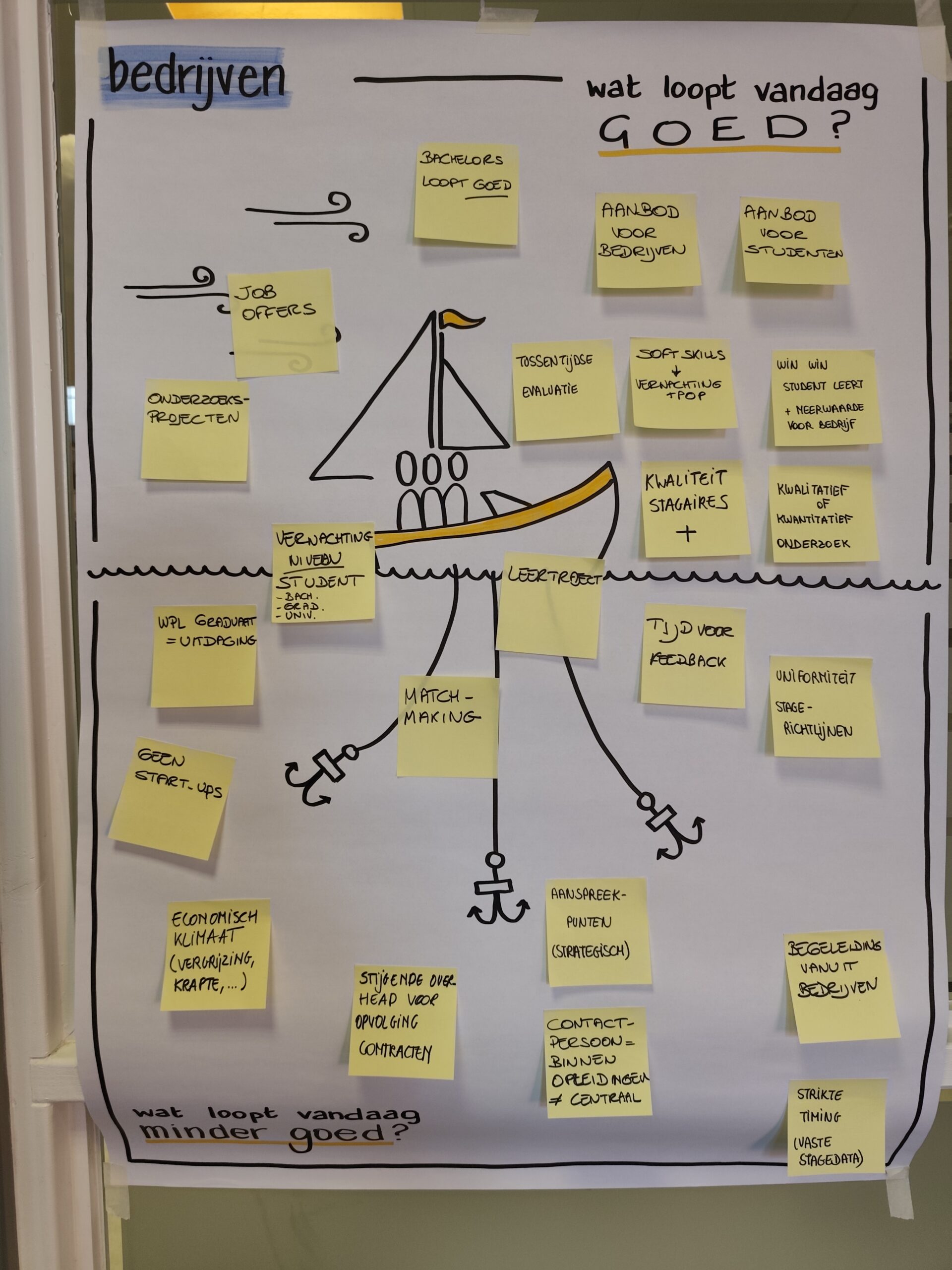 In twee interactieve sessies met in totaal 31 deelnemers werd bestaande stagepraktijk kritisch herbekeken en vertaald naar vernieuwende concepten. Daarbij werd bewust voorbij de huidige beperkingen gedacht, met focus op flexibiliteit, impact en leerwinst.